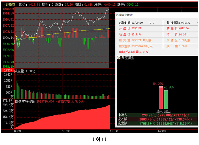 今日早间大盘虽低开在4000点整数关口下方,但市场只是略作下探,随后便开始逐步向上攀升,至中午收盘时,指数位于4017点。从日K线图上看,今天上午大盘依托着5日成本均线支撑再次向上发起冲击,周二的阴线已被多方吞没大半,可见市场短期强势格局依然没有发生改变,后市行情仍有继续上攻的可能。从下方的多空资金来看,早间开盘后,多方就占据优势,随后资金持续流入。截止到中午收盘时,沪市当中多方力量高于空方超过8个百分点,资金流入290多亿。从六大战区的情况分别来看,截止到今日中午收盘时,六个战区均为资金流入状态,其中不仅沪中大盘战区资金流入高达191亿,创业板战区与深中大盘战区的资金流入额更是双双超过210亿。可见今日上午多方全面发力,各战区均有资金大幅进场加仓,从而推动大盘快速站稳在4000点整数关口上方并继续向上发起冲击。在这种情况下,建议大家在控制好仓位的同时,密切关注场内多空资金的进出情况,若多方后续能够不断跟上,行情很可能会突破10月30日的4025高点,再创新高。