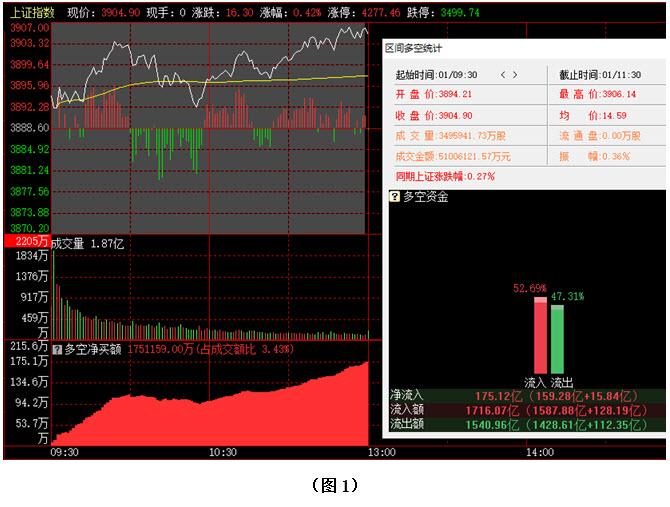今日早间大盘小幅低开,并很快向3900点整数关口发起冲击,虽遇到阻力,但市场只是略作回探就再度上攻,至中午收盘时,指数位于3904点。从日K线图上看,今天大盘继续向上回升,指数不仅重新站到3900点整数关口上方,而且还一举突破了34日成本均线与5日成本均线的双重压制,市场短期走势出现转强迹象。从下方的多空资金来看,早间开盘后,多方就占据优势,随后资金持续流入。截止到中午收盘时,沪市当中多方力量高于空方超过5个百分点,资金流入170多亿。从六大战区的情况分别来看,截止到今日中午收盘时,六个战区均为资金流入状态,且创业板战区、沪中大盘战区、以及深中大盘战区的资金流入额都超过了百亿。可见今日上午多方仍在全面发力,各战区均有资金持续大幅进场加仓,投资者的做多热情进一步提升。在这种氛围下,午后行情有望站稳在3900点之上,并对13日成本均线发起冲击,一旦形成快速突破,市场短期走势就会进一步好转。建议大家在控制好仓位的同时,密切关注多空资金的进出情况以及13日成本均线的得失情况,若午后资金仍积极进场,大盘轻松突破13日成本均线压制,则可跟随资金步伐,及时加仓做多。