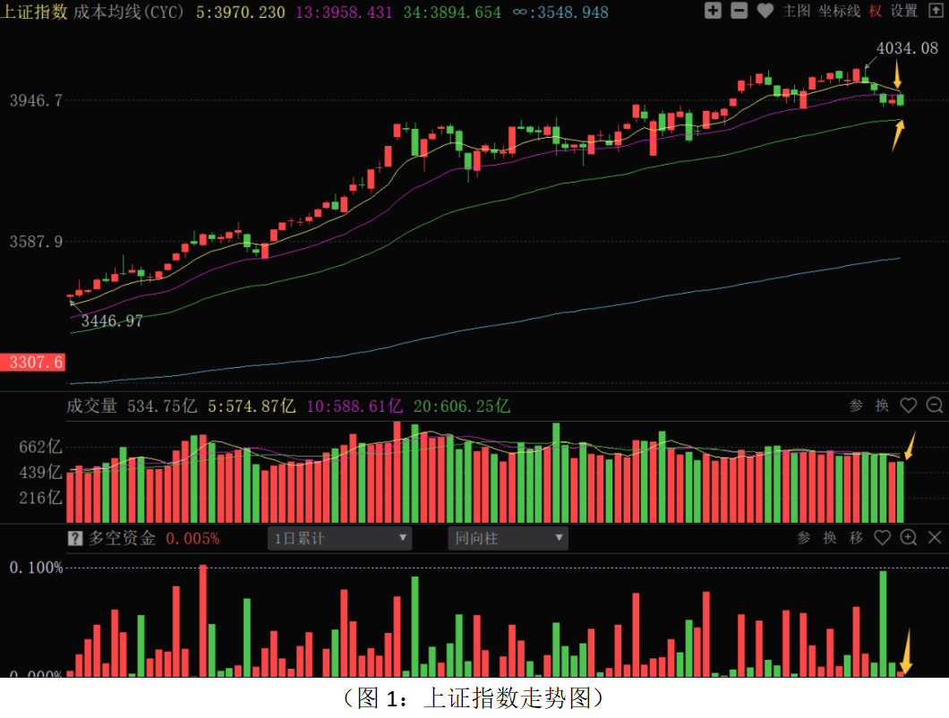 消息面,美国公布非农报告,显示就业数据出现矛盾信号,引发经济下行担忧,股市出现明显下跌,对A股市场有一定的扰动。从上证指数走势来看:受中金公司吸收合并信达证券、东兴证券消息影响,金融证券板块一度带领指数高开冲高,但受制于5日、13日成本均线压力,以及成交量的萎缩,整体资金进场积极性不高,股指冲高回落继续下跌,并创收盘指数新低。多空资金小幅净流出17.94亿元,从全天多空资金流向来看,早盘多空资金一度小幅流入,但午后资金由净流入转净流出,资金先进后出态势对市场人气有明显的拖累和影响。目前5日、13日短期成本均线拐头向下,对股指形成明显的压力,短期趋势趋弱。近3日K线走出“两阴夹一阳”的K线组合,短线空方占据一定的优势。板块结构上,银行等高股息和地产产业链方向涨幅居前,而地产板块的活跃是受未证实的消息影响,上涨持续性和对市场的正面影响有待观察。近期活跃的泛消费类、中期涨幅较大,人工智能、机器人、化工等主线板块继续处于风险释放状态,由于相关板块获利盘较为丰厚,大多数板块市场盈亏(CYS13)指标尚未达到-5的技术性超跌状态,近期对市场整体走势仍有承压。在政策真空期,中日关系紧张局面尚未缓解,以及市场对美国经济担忧引发美股下跌的背景下,会进一步加大近期或前期强势品种的获利盘抛压,对市场整体做多积极性有一定的挫伤。当前,11月5日K线低点有一定的心理和技术支撑,但总体支撑力度不强,叠加昨日尾盘明显下跌的走势,今日股指仍有顺势下探或考验34日成本均线的需求。股指一旦进入34日成本均线,以及8月底至10月底箱体高点3900点回探阶段,股指震荡区间会从3900—4000点再度下移至3800—3900点区间。从优化布林线指标来看,股指触及“中上轨”位置后回落,目前中轨位置被跌破,中轨位置是波段趋势的分水岭,也是多方的重要防守位置,短线趋势开始转弱。当前股指在中下轨位置(3920点左右)震荡,由于股指距离中下轨较近,支撑力度不强,一旦位置失守,股指有进一步考验下轨位置(3870点左右)支撑的可能。一旦股指跌至或跌破下轨位置,会表现出短期超卖的技术走势,意味着短期调整可能进入尾声或走向阶段筑底的走势,要密切关注关键位置的资金流向做好低吸的准备。从0Z指数走势来看:股指连续明显下跌,再度考验无穷成本均线支撑,多空资金小幅净流出18.64亿元。全市场超过3800只股票下跌,个股处于相对普跌的状态。同时,活跃市值连续下跌创新低,资金目前逢低进场意愿不足,短期无穷成本均线位置支撑力度有待观察。如果无穷成本均线失守,股指会进一步考验9月初和10月中旬震荡区间下沿。从短期结构牛指标组来看:马股比例明显抬升至62%以上,牛股比例明显拐头向下至20%左右,熊股比例开始明显拐头向上至17%左右,说明个股整体风险在增加,尤其是近期涨幅较大的强势股风险较大。目前市场盈亏(CYS13)数值在-1.6左右,市场连续调整尚未出现技术性群体超跌,不宜轻易抢反弹。当前操作上应采取稳健策略应对,不宜激进追涨,总仓位控制在5成左右,底仓持股为主,浮动仓位紧盯个股的资金流向和决策信号做好仓位的动态调整。