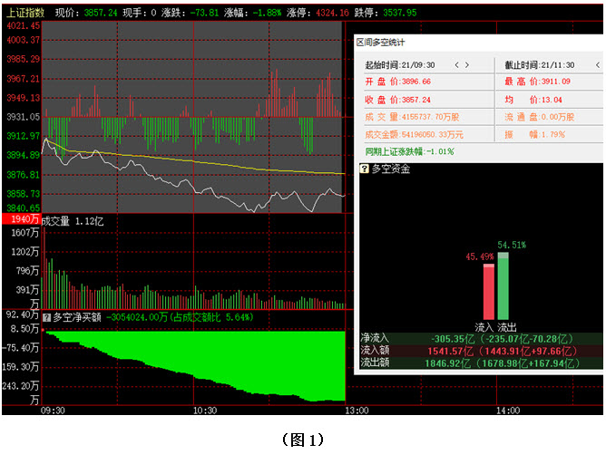 今日早间大盘直接低开在3900点下方,并一路下探,直到3840点附近市场才获得支撑,但依然没有出现有力反弹,至中午收盘时,指数位于3857点。从日K线图上看,今天上午大盘大幅低开,指数不仅快速跌破34成本均线,而且还在继续下探,市场短期走势进一步转弱。目前行情已经重新回到8月26日之后的横盘震荡箱体内部,若接下来多方依然无法及时组织起有力反击,将不排除大盘有到该箱体下沿位置3770点附近寻求支撑的可能。从下方的多空资金来看,早间开盘后不久,空方就占据优势,随后资金更是持续大幅流出。截止到中午收盘时,沪市当中多方力量低于空方超过9个百分点,资金流出300多亿。从六大战区的情况分别来看,截止到今日中午收盘时,六个战区均为资金流出状态,其中不仅创业板战区与深中大盘战区资金流出双双超过百亿,沪中大盘战区的资金流出额更是高达221亿。可见今日上午空方全面施压,恐慌性抛盘大量涌出,而多方几乎毫无反击之力。在这种情况下,空方动能往往不会立即衰减,所以行情短期内很可能会有继续下探的动作。建议大家控制好仓位,不要盲目抄底,可密切注意大盘的CYS13指标和0Z指数的黄金坑指标变化,待市场出现群体超跌时,则可优选个股,逢低逐步吸纳。