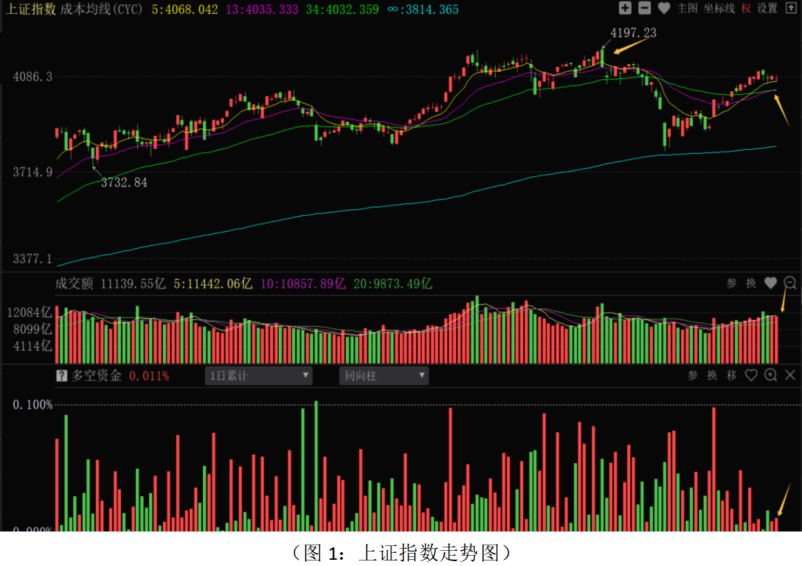 消息面,中央政治局会议召开,分析研究当前经济形势和经济工作。对于经济形势的研判表述,起步有力、主要指标好于预期,彰显强大韧性和活力。同时,也强调面临一些困难和挑战,经济持续稳中向好的基础还需要进一步巩固。这是对一季度GDP增速5%的肯定,强化了市场信心。宏观政策上,精准有效实施更加积极的财政政策和适度宽松的货币政策,在一季度经济总体向好的背景下,降准降息等政策力度趋缓,但政策继续释放偏暖的信号,对经济保持强有力的托底支持。资本市场方面,稳定和增强资本市场信心,中期继续强化市场稳定的宏观基本面支撑。行业方面注重产业和民生的发展方向,新基建+稳楼市+保猪价,利好电力设备、算力、农业等。总体上,政治局会议为市场奠定了中期“稳中向好”的基调,但短期受中东局势和“五一”假期观望情绪的影响,节前走势总体上仍是震荡为主。从上证指数来看,股指持续围绕5日成本均线缩量震荡,连续收出“十字星”,多空双方处于相对平衡的状态。板块结构上,煤炭炼焦、石油化工、饮料低度酒、高速公路、电力、医药、银行等板块涨幅居前,军工、计算机、通信设备、电子半导体等板块跌幅较大,可以看出节前资金保持一定的观望和防御性的操作思路。“五一”假期临近,市场成交量萎缩,加上中东局势的不确定性,资金整体做多积极性难以大幅提升。近两日是年报、一季报的业绩最后释放阶段,盘面上部分个股仍有业绩风险释放的空间。技术上,短期成本均线在4030-4060点一带有较强的支撑,前期高点和筹码密集峰位置有较强的压力(4130—4200点)。在高层会议政策部署和业绩风险释放之后,行情能否对震荡走势形成突破,密切关注中东局势能否有积极的消息落地,以及5月中旬特朗普访问中国行程的敲定情况。从0Z指数走势来看,股指围绕中短期成本均线连续震荡,全市场上涨个股家数明显少于下跌个股家数,多空资金净流入6.79亿元,可以看出资金虽然没有大幅离场动作,但进场意愿明显不足。活跃市值连续上涨之后,面临前期平台压力出现冲高回落走势,“五一”假期之前,资金总体做多积极性不高。波段结构牛指标显示,熊股比例连续调整之后继续拐头向上,马股数量连续抬升后持续向下运行,牛股数量持续上升后开始走平,市场整体赚钱效应没有大幅抬升,部分反弹品种短线面临获利盘和解套盘的抛压。节前操作上应采取稳健策略应对,总仓位控制在5成左右,底仓持股为主;短线仓位多看少动,部分品种应趁反弹根据关键位置资金流向和短线决策信号做好仓位调整。
