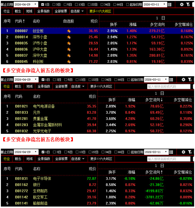 (4月29日午评,北京指南针科技发展股份有限公司提供)