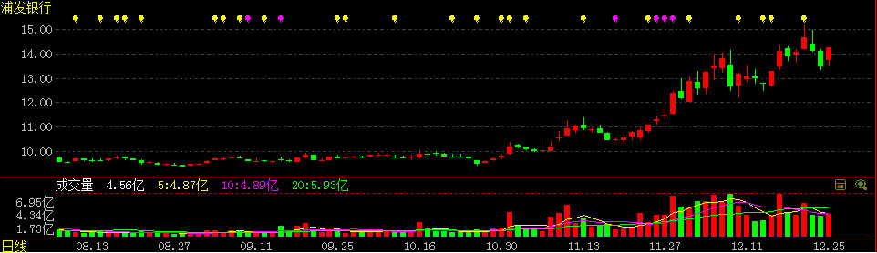 个股k线界面:可以选择叠加成本均线、信息雷达。在信息雷达中,
