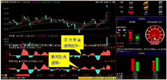 敢死队资金不同于市场上的主力资金,它是指南针最新研发的的索罗斯模型监测到的一类变频资金,它潜伏于散户中,在市场机会临近时,主动出击引导走势。