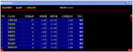 (一)功能含义:通过多项指标的筛选,选出基金一致增持的板块和重仓个股
