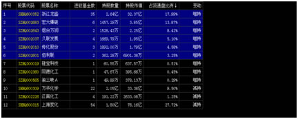 点击“变动”,系统自动将“增持”的个股排在前面。接着点击第一个个股。