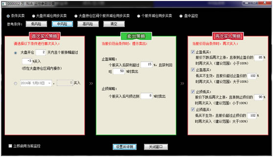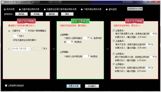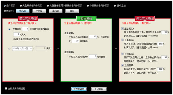 自定义参数的条件买卖参数需要用户根据需求情况设置,同时也可以参考系统给出的三种风险条件