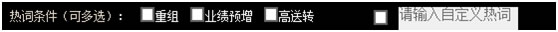 热词条件中提供热词查询功能,在输入框内输入相关热词,即可搜索出相关股票。