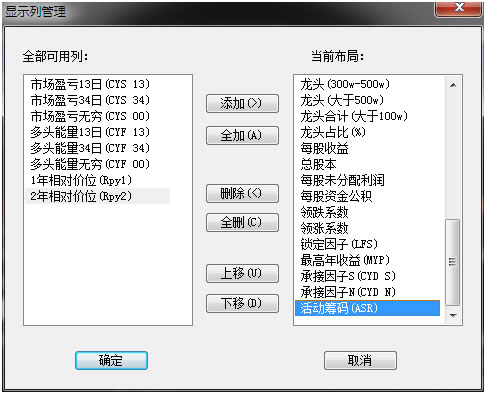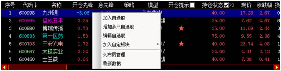 鼠标右键可以对股票列表进行列布局管理。