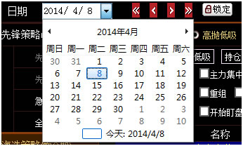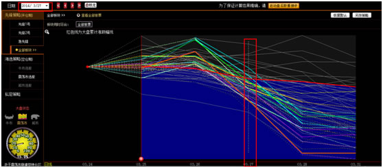 3.通过日期选择,可以选择查看任何一个交易日的策略。选择点击“锁定”按钮,锁定当前日期,在走势图中锁定的日期以竖线提示。