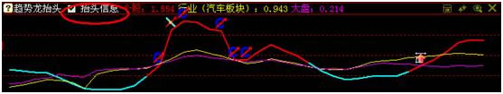 当个股出现抬头信号时在个股线上会出现对应的信号图标,鼠标移到图标上会提示信号类型: