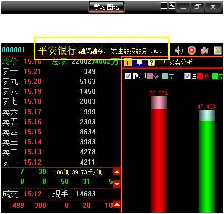 1)选定一只股票,如果该股票是融资融券的标的股票,右上角的股票信息中将会显示“发生融资融券”字样。