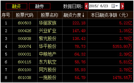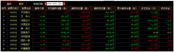 点击左上角的“融券”按钮,可将界面切换至“融券”的排序状况。其他均同上。