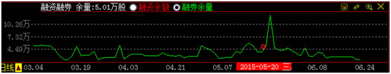点击“融券余量”选项,出现的数据为当前及历史的融券余量状况。