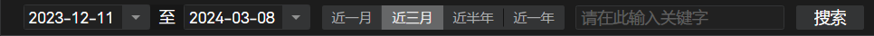 时间选择部分可以手动设置搜索的具体起始时间和终止时间,未进行设置之前默认时间为 近三月 的起止日期。右方提供快捷键:近一月、近三月、近半年、近一年。