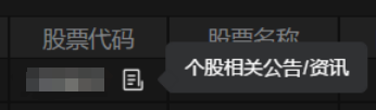 可通过点击左侧股票池中“个股相关公告/资讯”图标