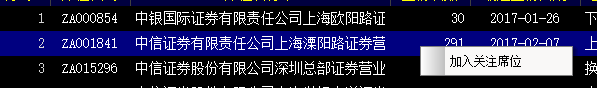 席位龙虎榜中选中任一席位,点击鼠标右键-加入关注席位