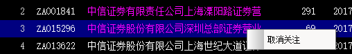 取消操作,选中已加入关注的席位名称,鼠标右键点击“取消关注”将其从关注中取消。