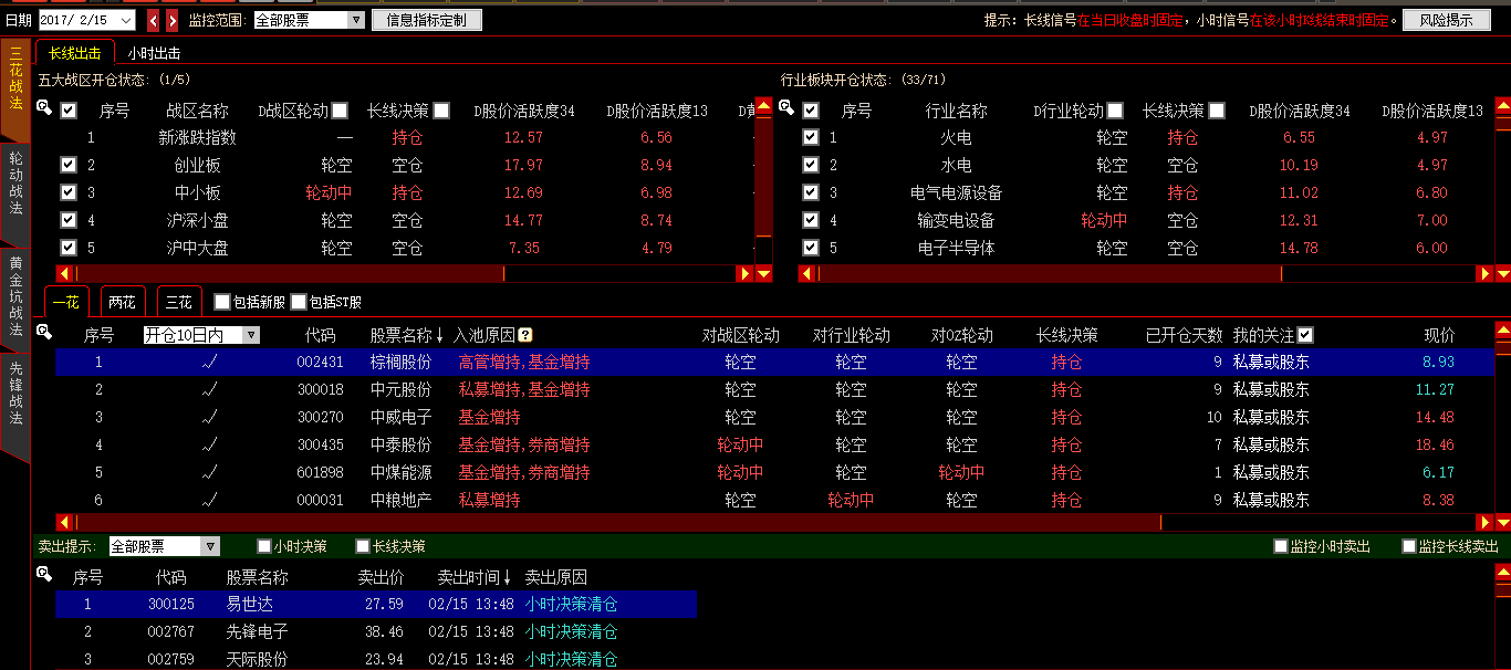保存以上条件后,进入四个战法查看长线出击或小时出击的股票池,在股票列表中有“我的关注”列项,勾选过滤出与我的关注对应的股票。如过滤的股票我的关注显示为“私募或股东”则表示这只股票的股东在我的关注中。需要注意的是,当前动态擒龙平台中所示日期和私募英雄榜关注股东的上榜日期、高管交易榜中关注高管的披露日期、席位龙虎榜中关注席位上榜日期后一个交易日,通过三个时间的交集计算过滤。