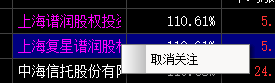列表中为加入关注的所有股东汇总。选中股东点击鼠标右键,可取消关注。