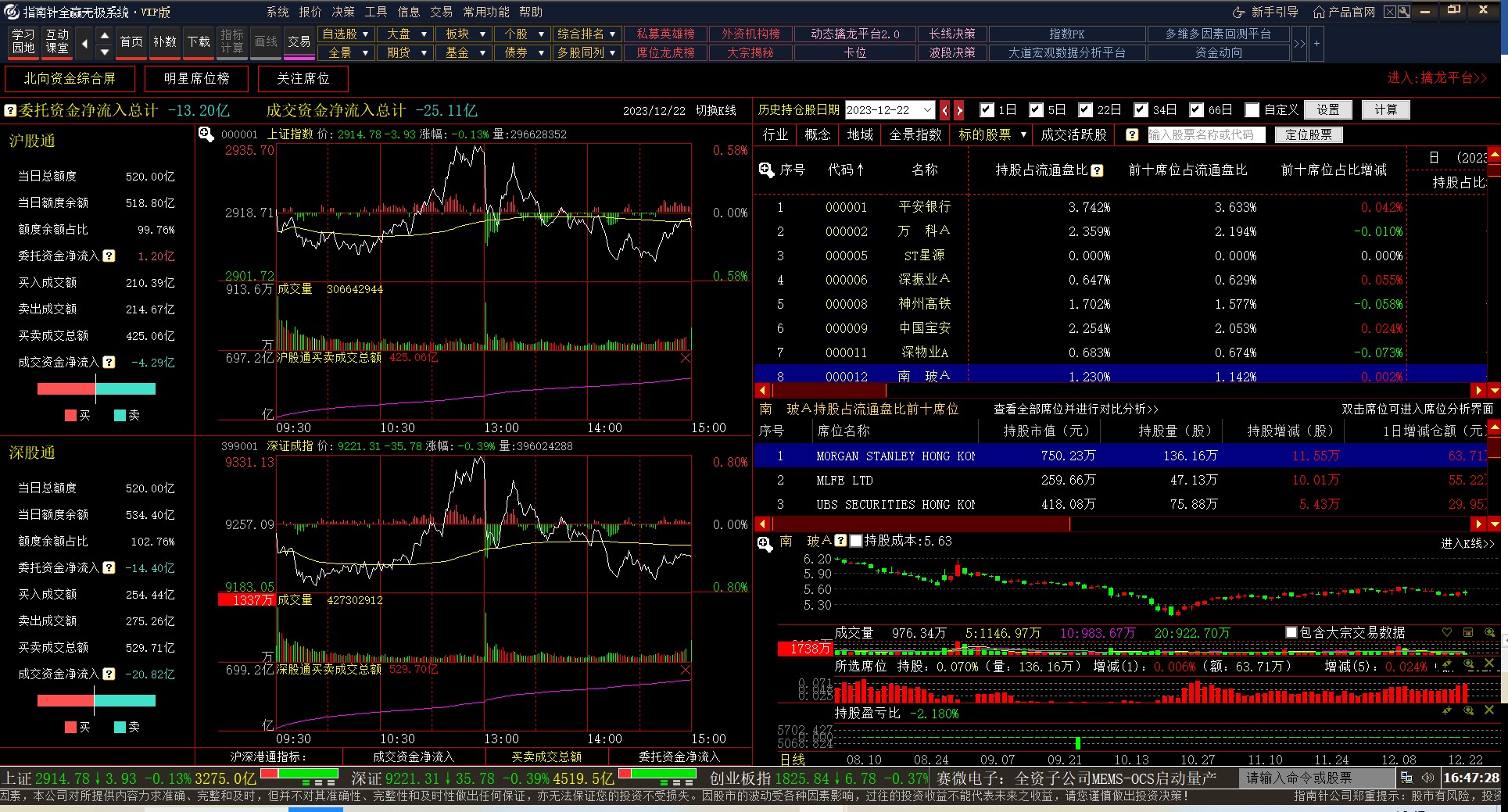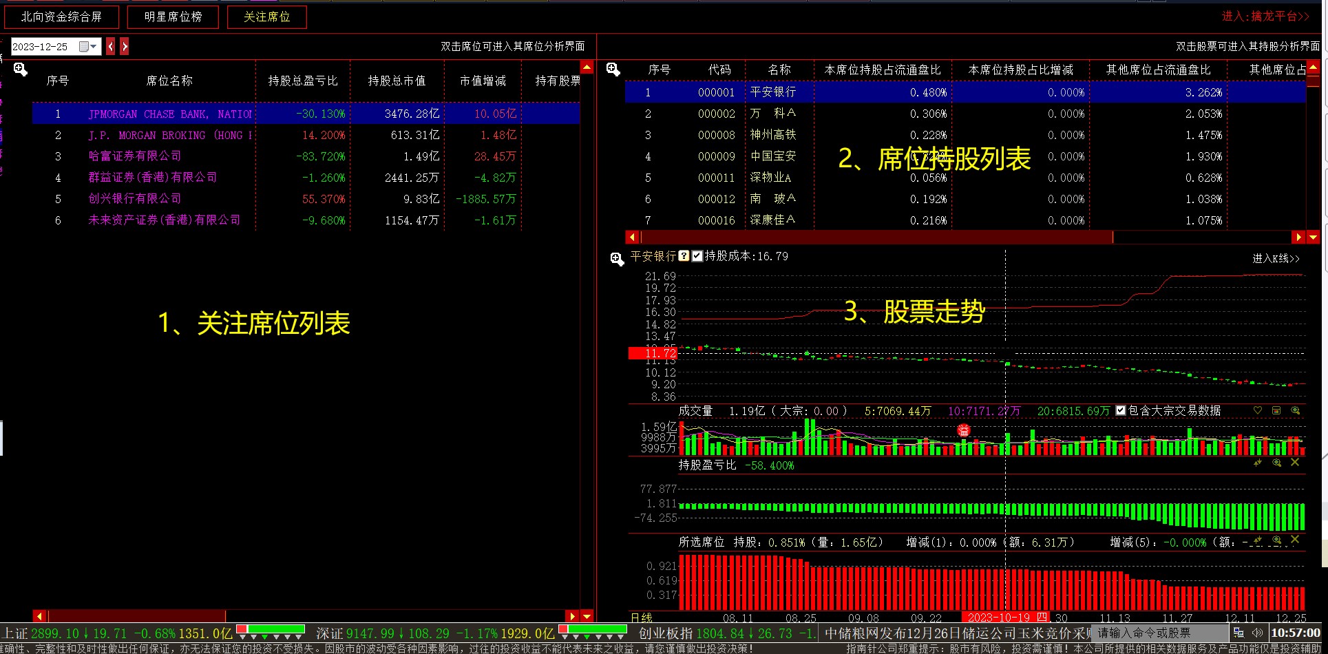 该功能有三大模块:北向资金综合屏、明星席位榜、关注席位
