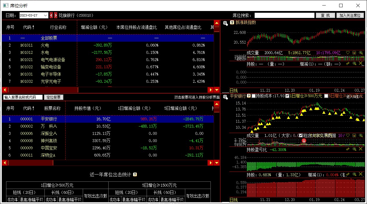 另有两个功能模块,分别是【席位分析】、【持股分析】。