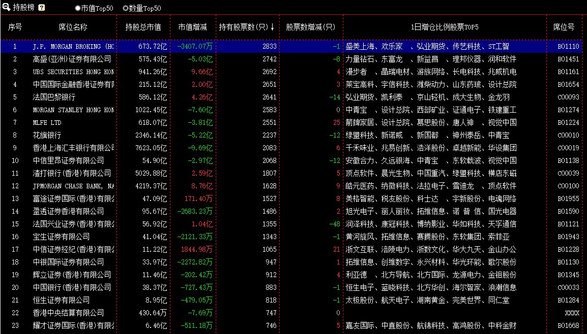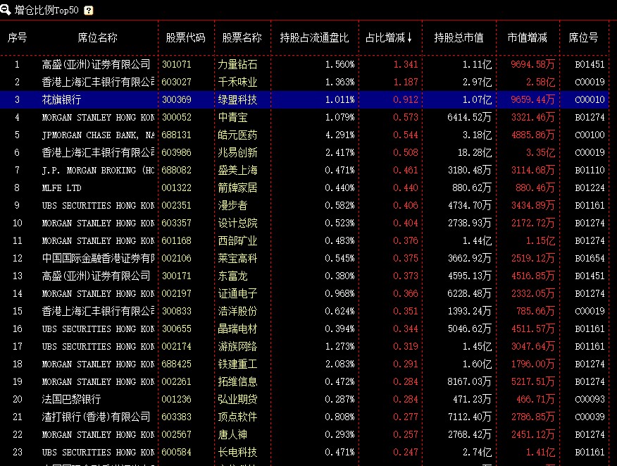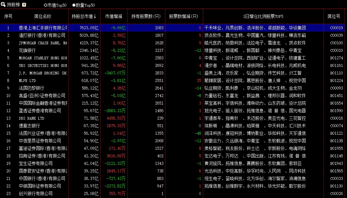 该榜单是按照席位持股占比增减选出当日前50名席位,见图21