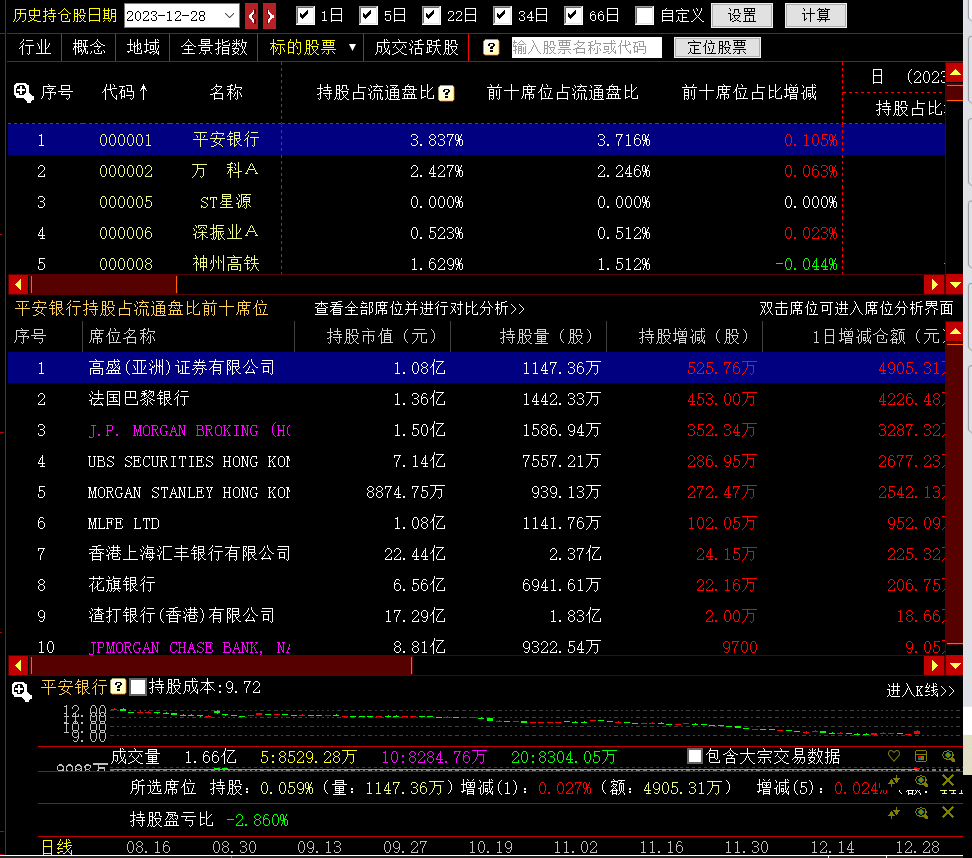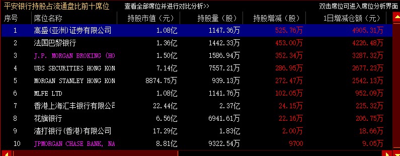 对某个席位所在行进行双击可进入该席位的席位分析界面,如双击花旗银行席位,图10