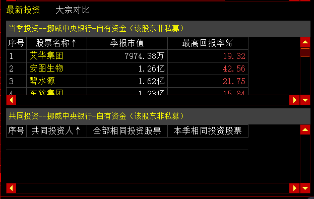 共同投资分析,显示的该外资机构和其他外资机构在某只股票的共同投资记录。如下图所示