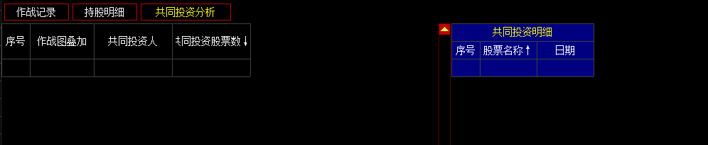 共同投资中显示的为与所选股东有相同投资股票的人,双击某个共同投资人,进入该投资人的作战图界面。