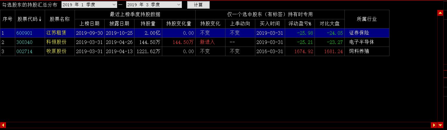 ,点击“计算”按钮查看持股汇总: