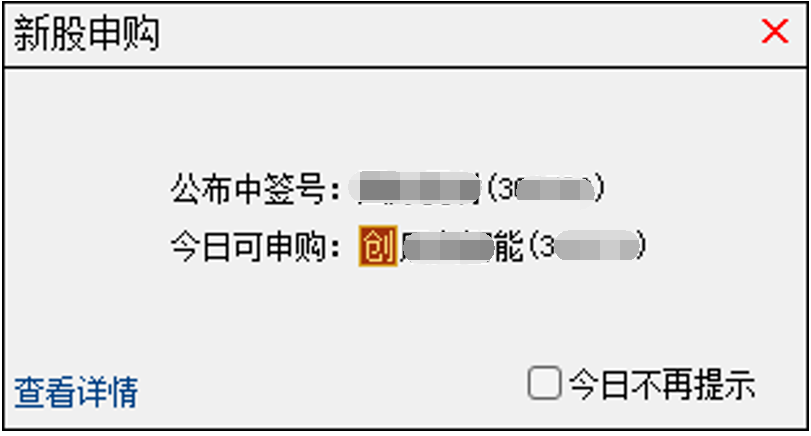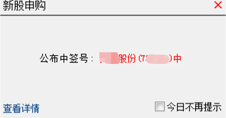 提示方法:系统在软件右下角以小框弹出提示,点击“查看详情”则弹出“新股申购与中签”弹窗界面