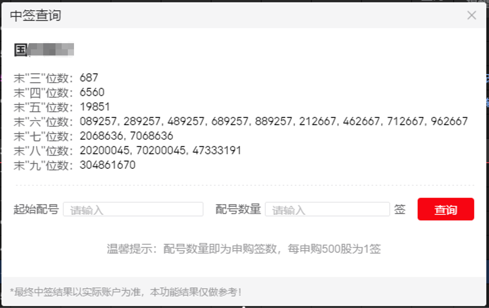 注2:以上起始配号和配号数量可去自己的证券账户查询,以实际账户为准。
