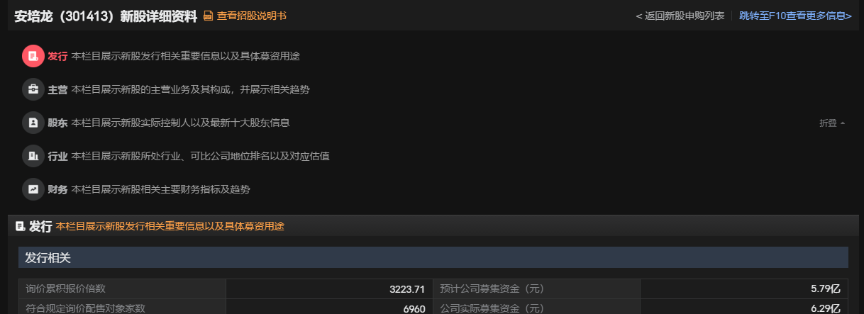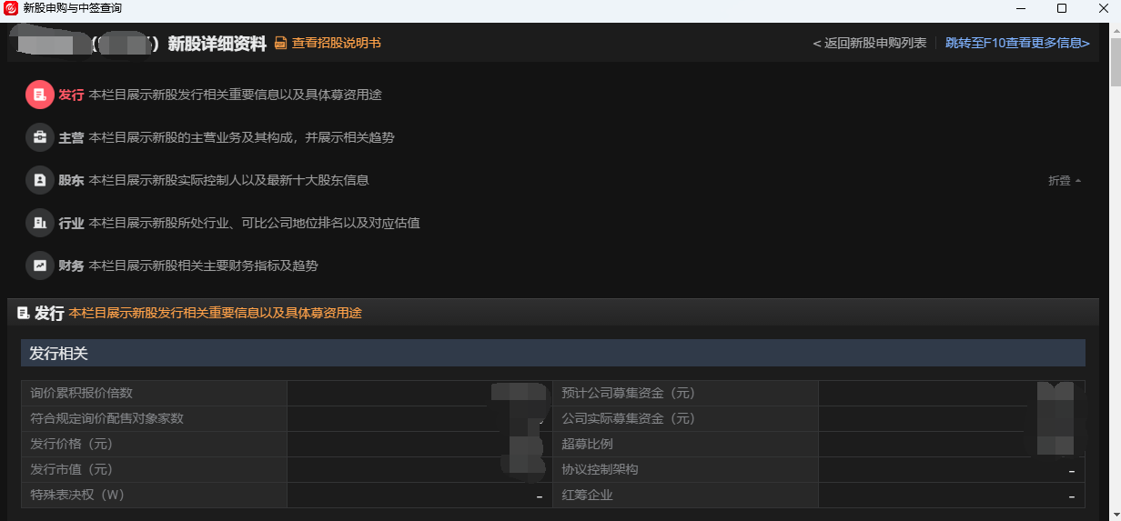 点击“相关资料”列的“申购指南”,可跳转至该股票的详细信息页面。