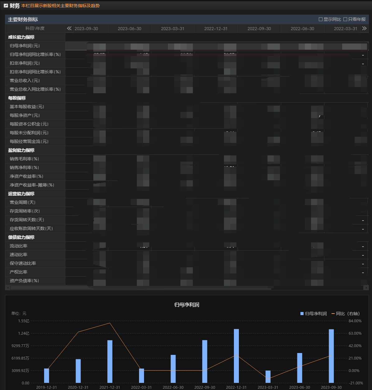 “财务”展示该股票的各报表主要财务指标及相关趋势。