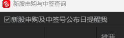 (1).新股申购提醒勾选左上角的“新股申购自动提醒”可以定制每日新股申购提醒。