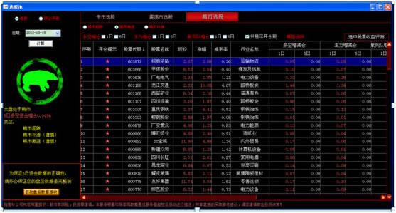 ②点击牛熊判市界面右侧的当前市场下适合的策略按钮,弹出“一键选股”界面后,选择所要选股的日期(系统默认为当日),点击计算按钮。