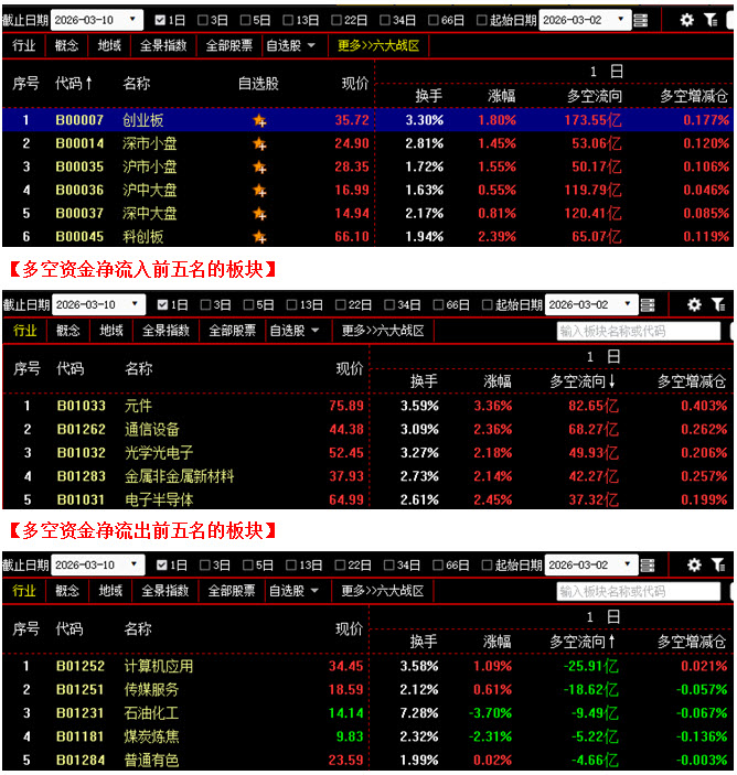 (3月10日午评,北京指南针科技发展股份有限公司提供)
